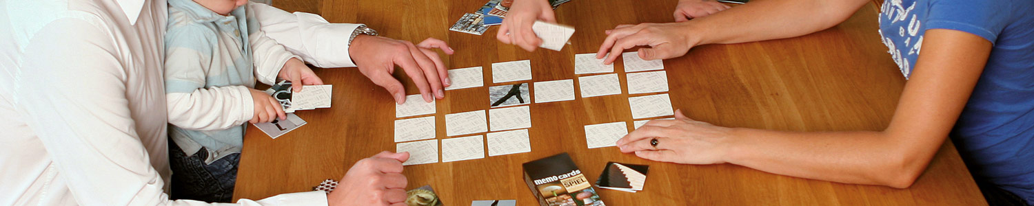 Mittlerweile sind sieben ganz unterschiedliche Titel in unserer Memocards SUCHE DREI Reihe erschienen, davon leider nur noch zwei lieferbar. Sie alle vereint die erweiterte Memory Idee und 60 tolle Fotomotive pro Spiel. Spielbar sind sie in der Regel ab 6 Jahren, machen aber auch im biblischen Alter noch Spass und trainieren so spielerisch jund und alt. Also ein Memo Gedächtnisspiel für Kinder und Erwachsene.